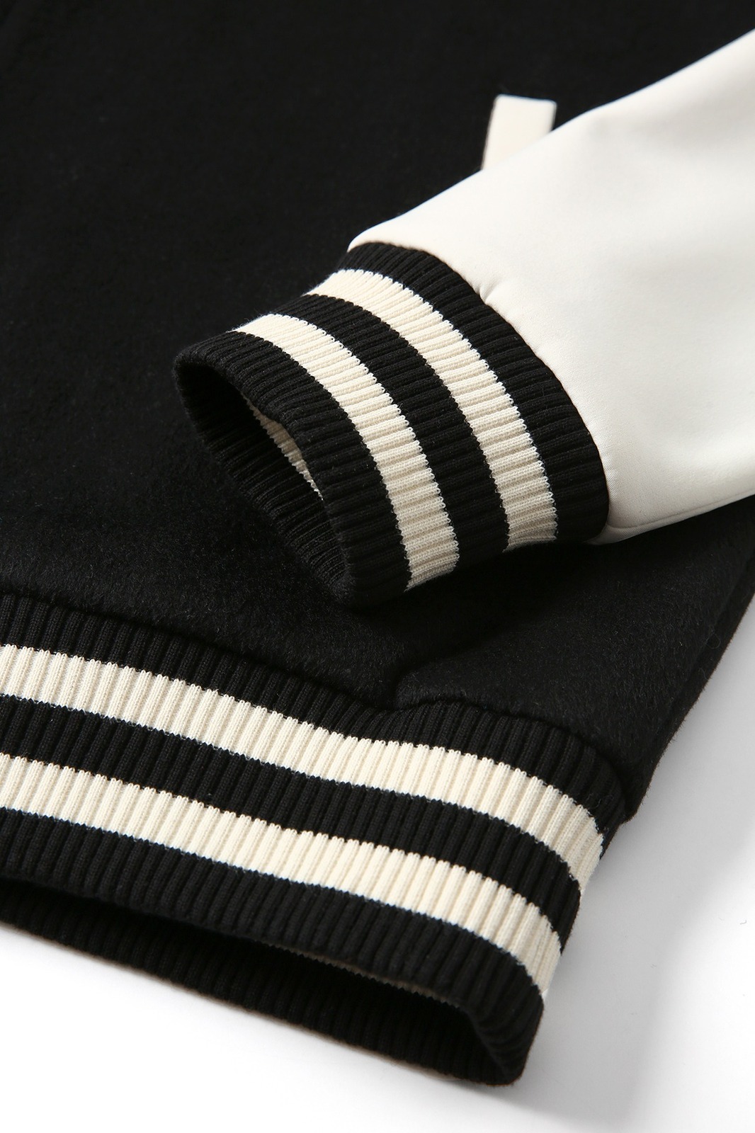 - Ribbed knit on hem and cuffs